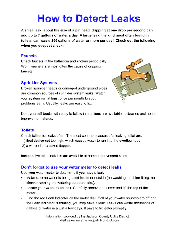 Jackson County Utility District provides service and maintenance up to, and including, the meter. Once water exits the meter, it enters the customer’s privately owned system and area of responsibility. If we observe potential leaks or other problems with a customer’s plumbing, we will notify the customer. However, it is the customer’s responsibility for assessing and making any necessary repairs or calling a qualified plumber to do so on their behalf.